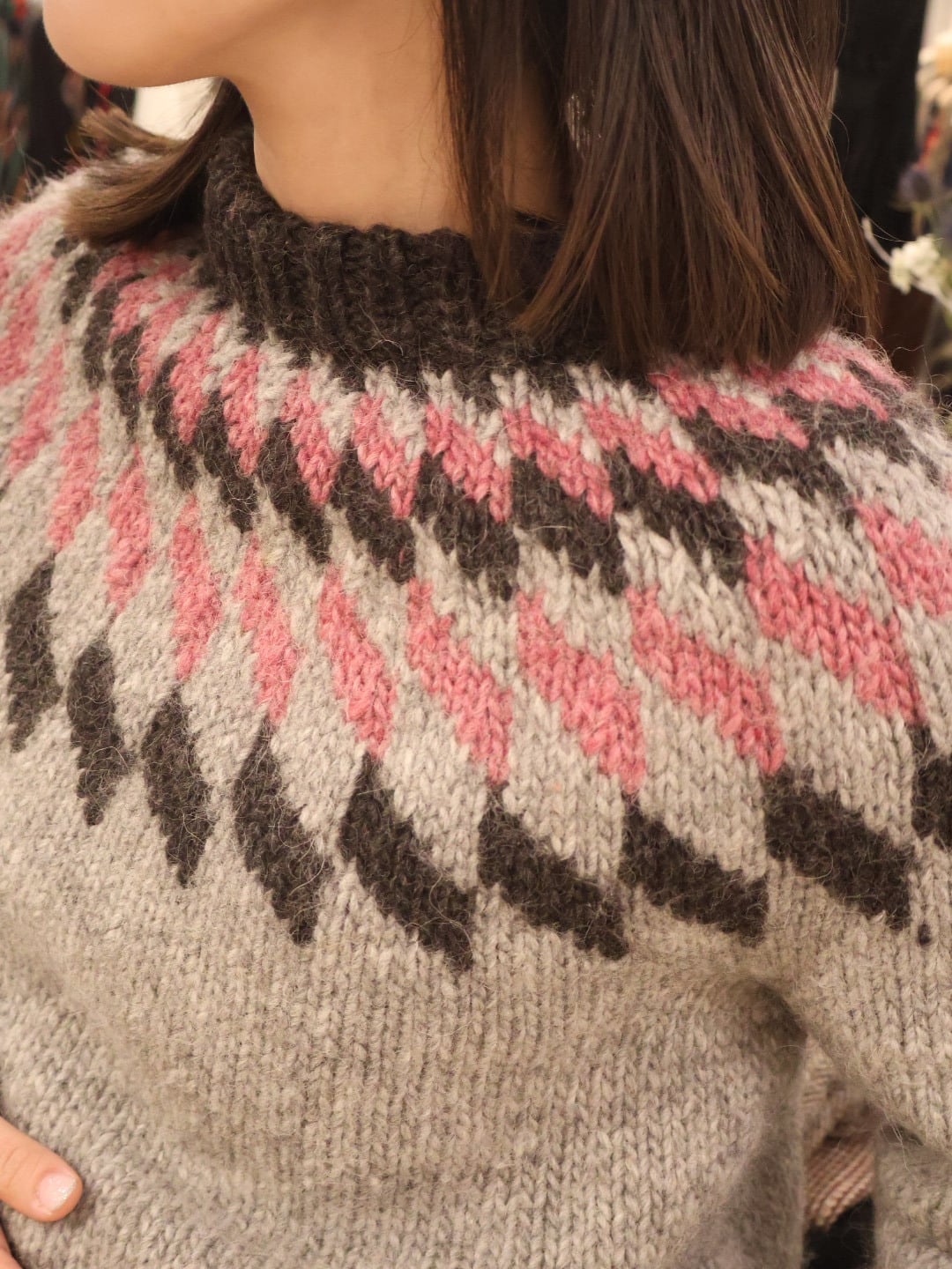 冬の定番、ノルディックニット。落ち着いたカラー配色で、使い勝手の良い一枚。
