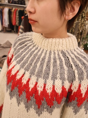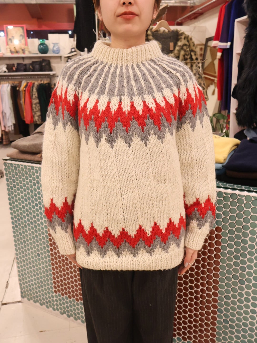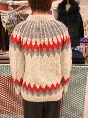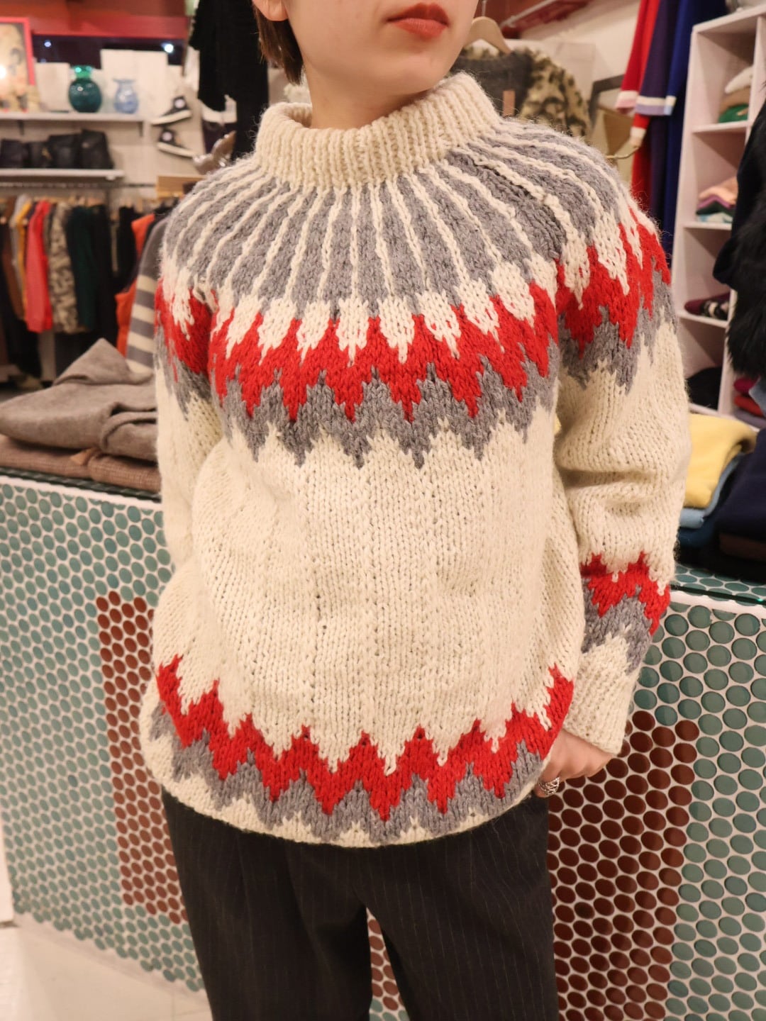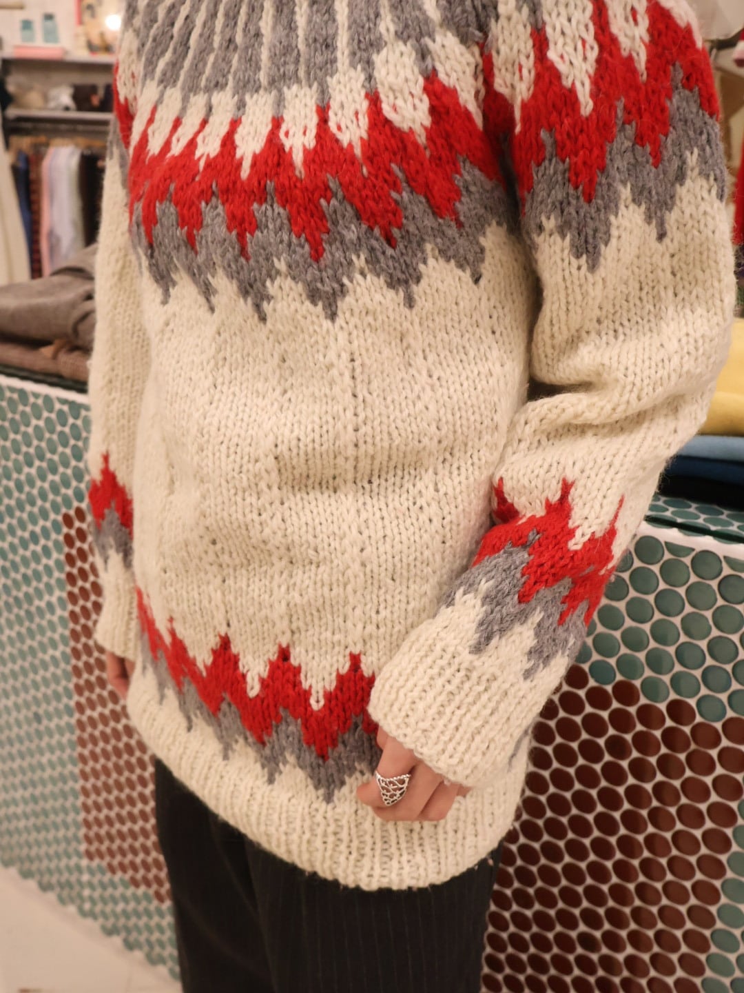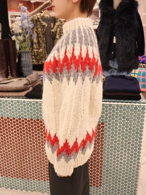 ローゲージにざっくりと編まれた風合いは、ハンドニットならではかと。