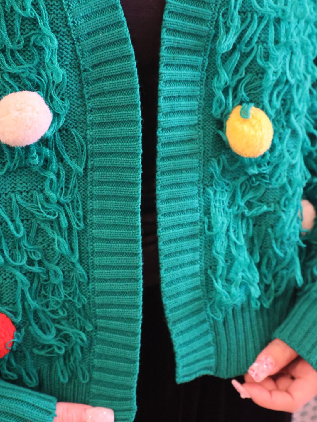 フリンジ ポンポン ニット カーディガン