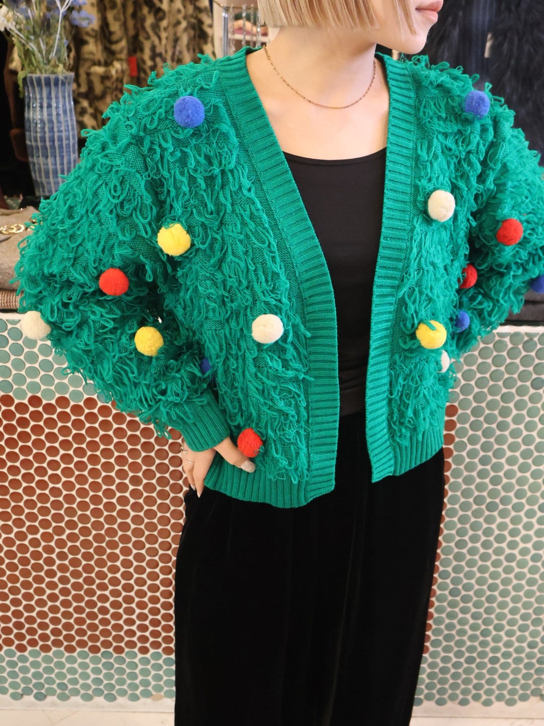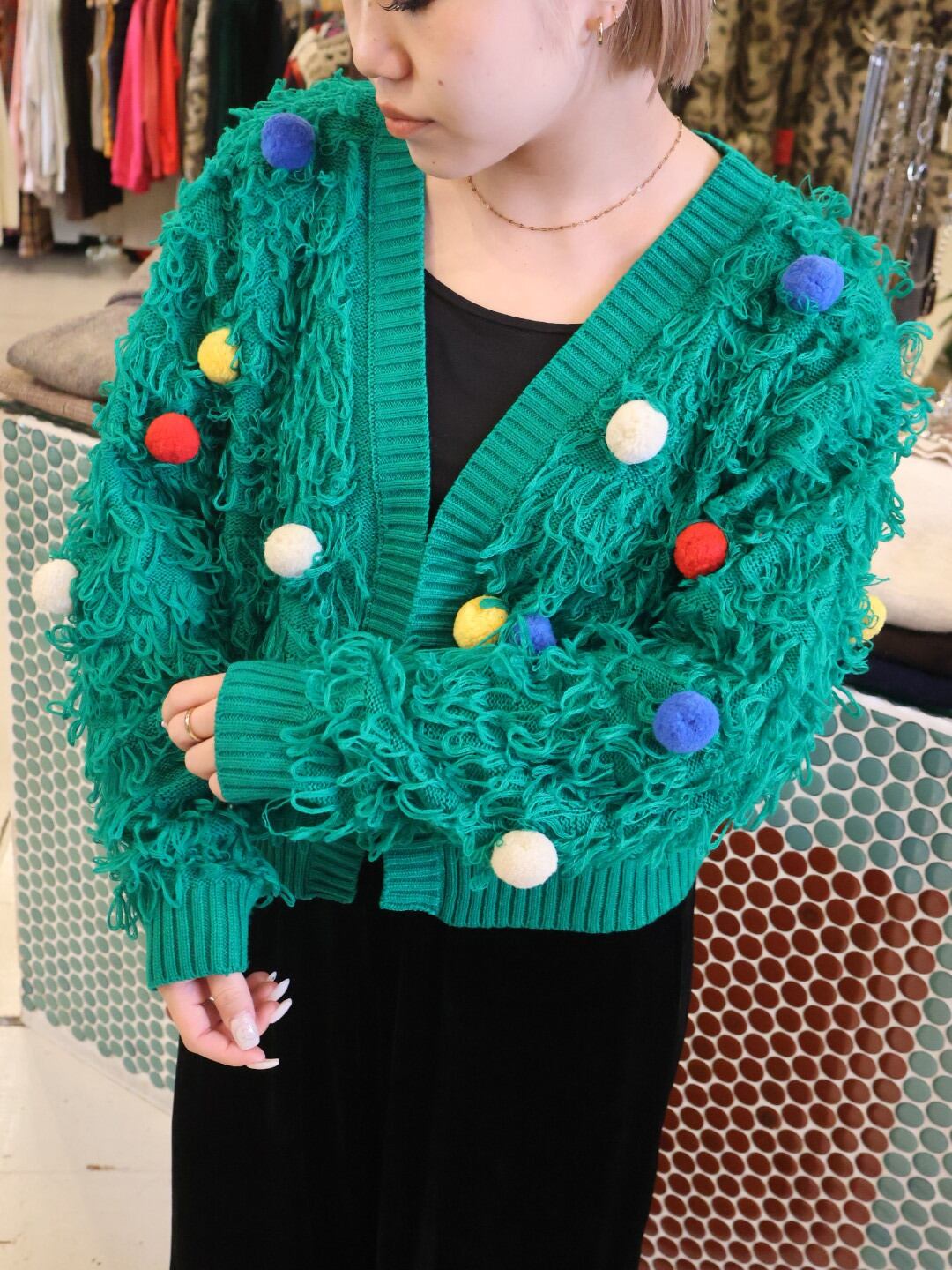 fringe pom-pom knit cardigan【1965】