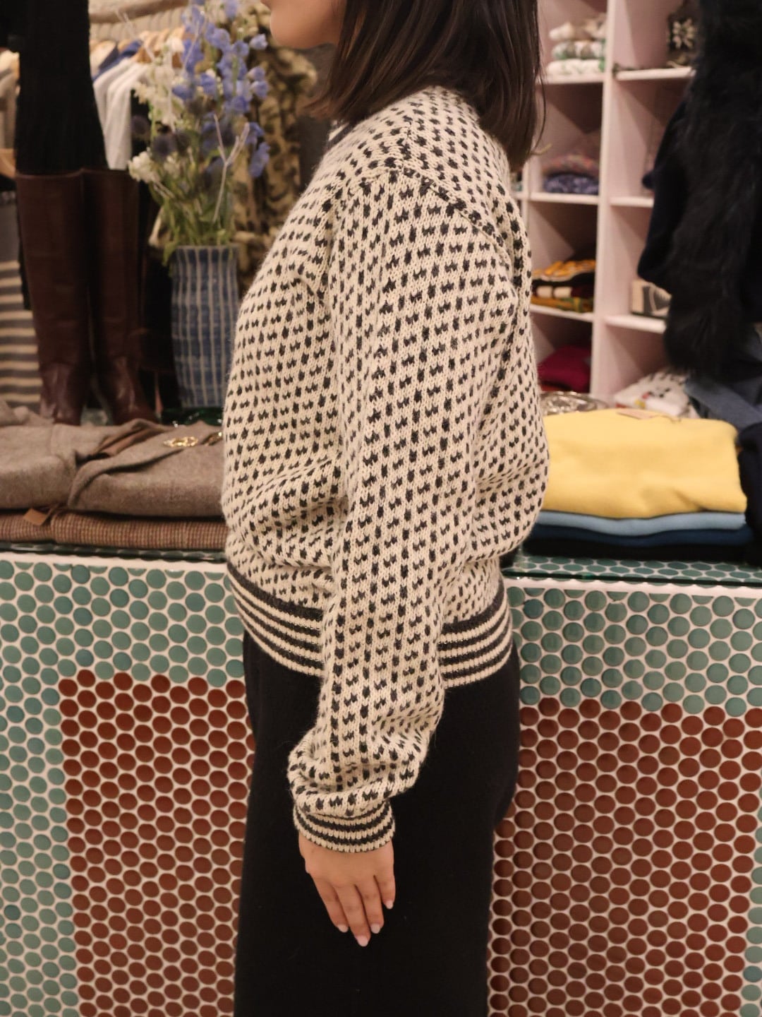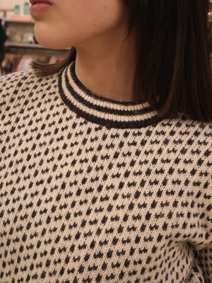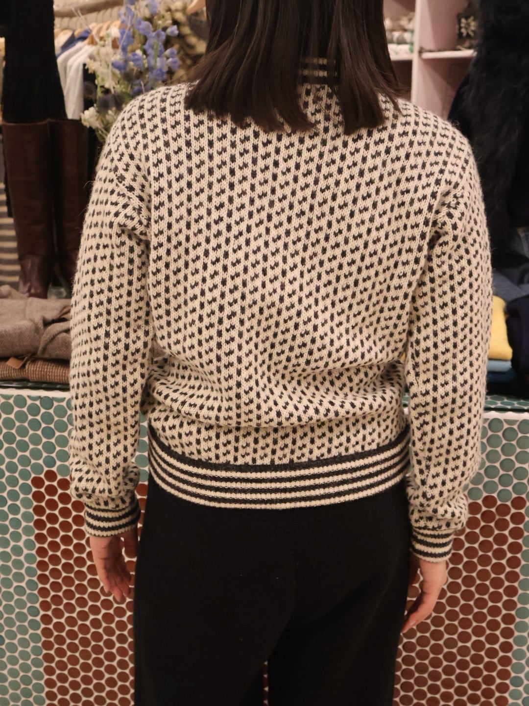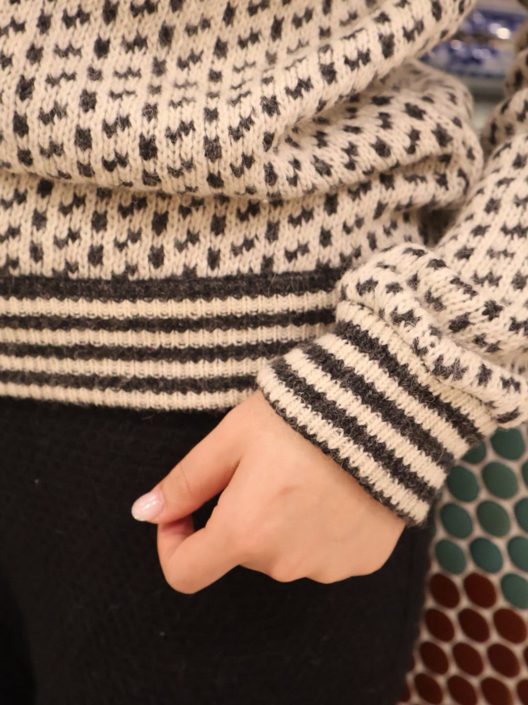 白ベースに、ダークグレーのパターン、リブ部分にはボーダー入り。