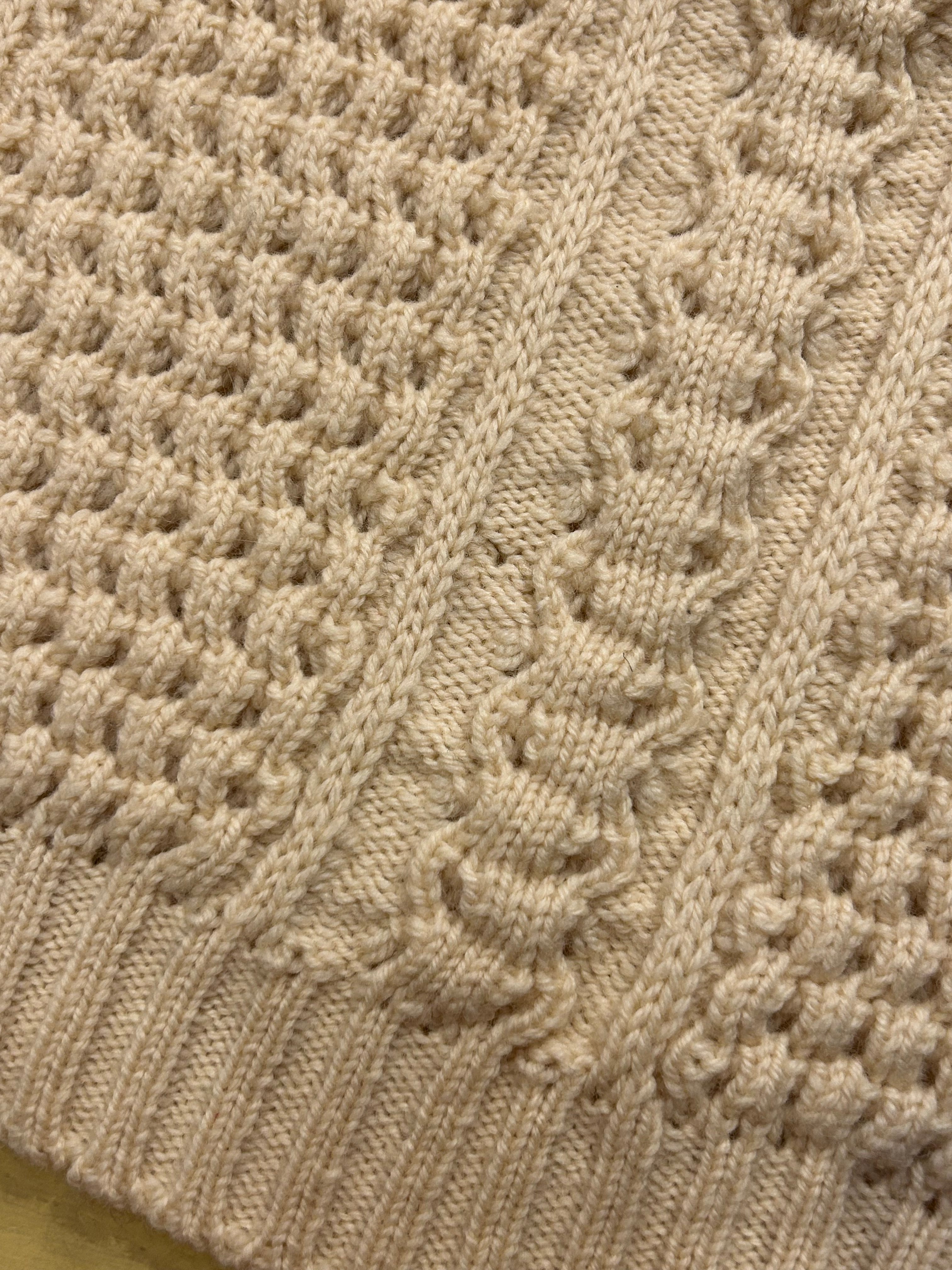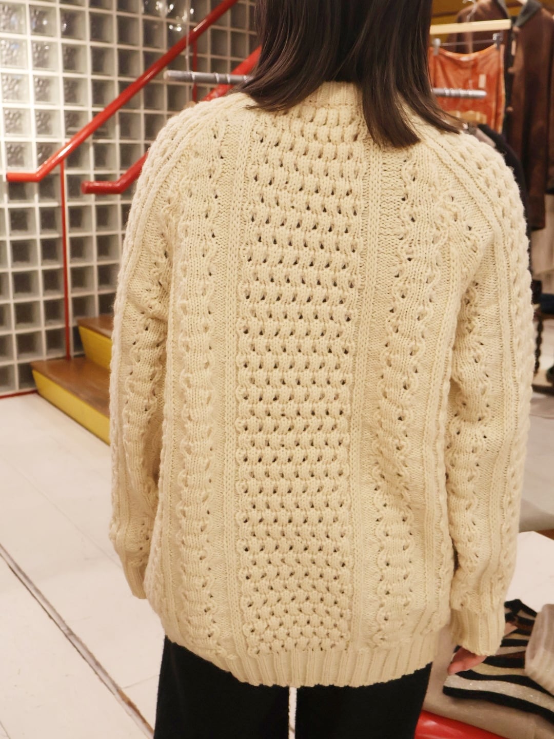 ウール製でずっしりとした重みがあり、防寒性と保温性に優れているのが特徴のフィッシャーマンニット。