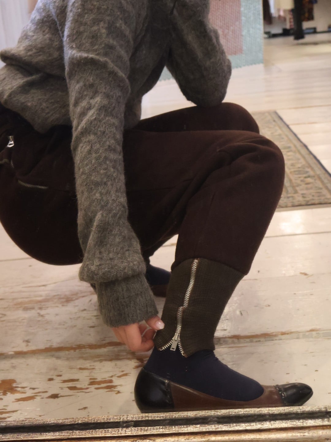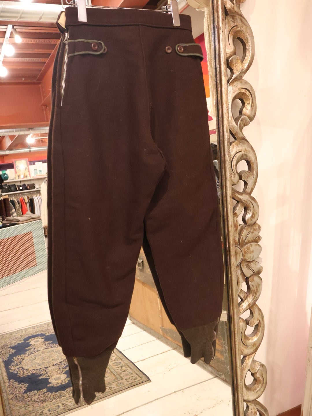 ジョッパーズパンツのような、丸く膨らんだフォルムが特徴的。裾はリブでぴたっと足のラインに沿い、メリハリのあるデザイン。ジップで開閉可能で、シューズやムードに合わせて楽しんで。ウエスト横のアジャスターボタンなど、細かなディティールまできゅんとくる一本です。