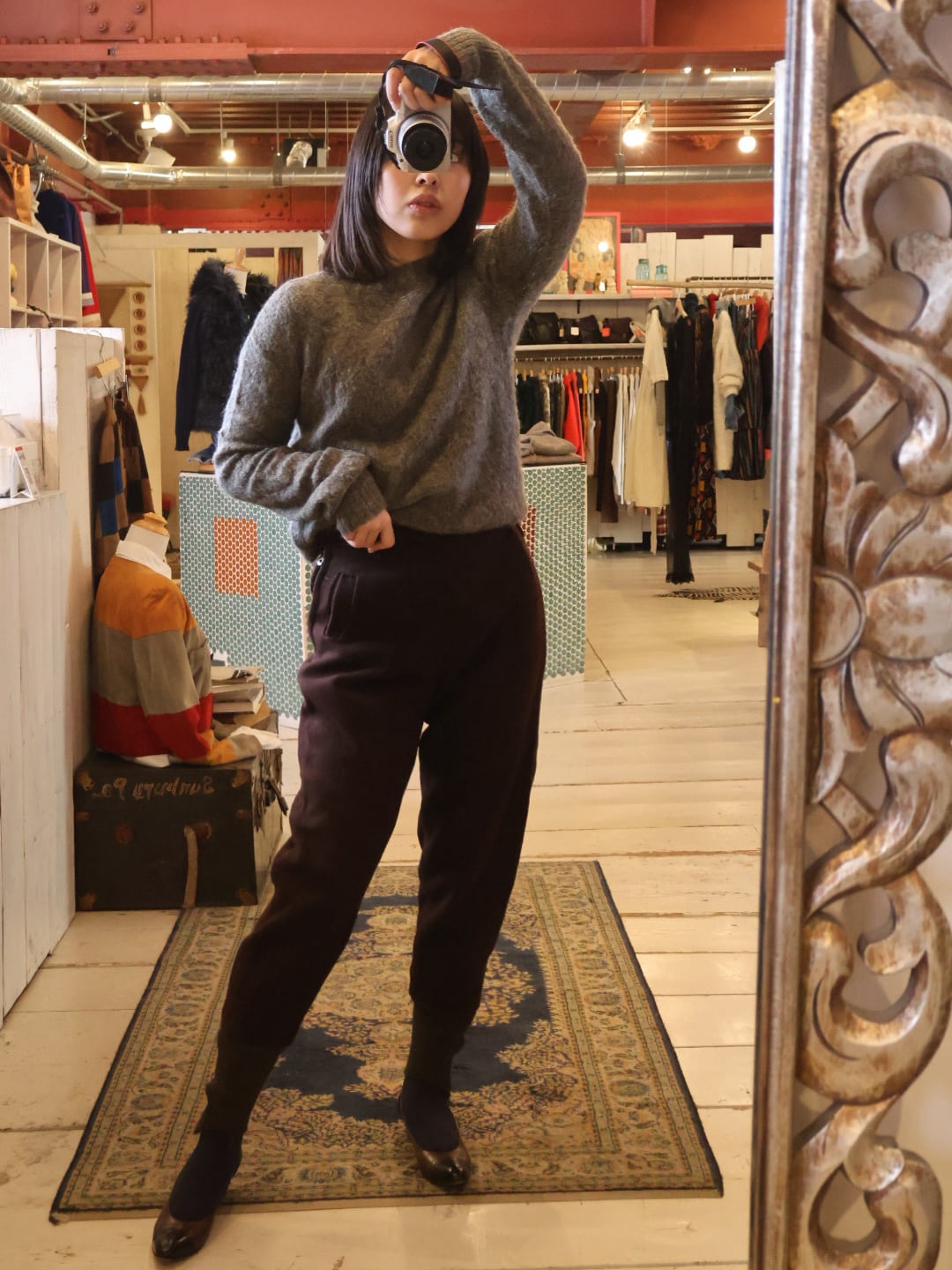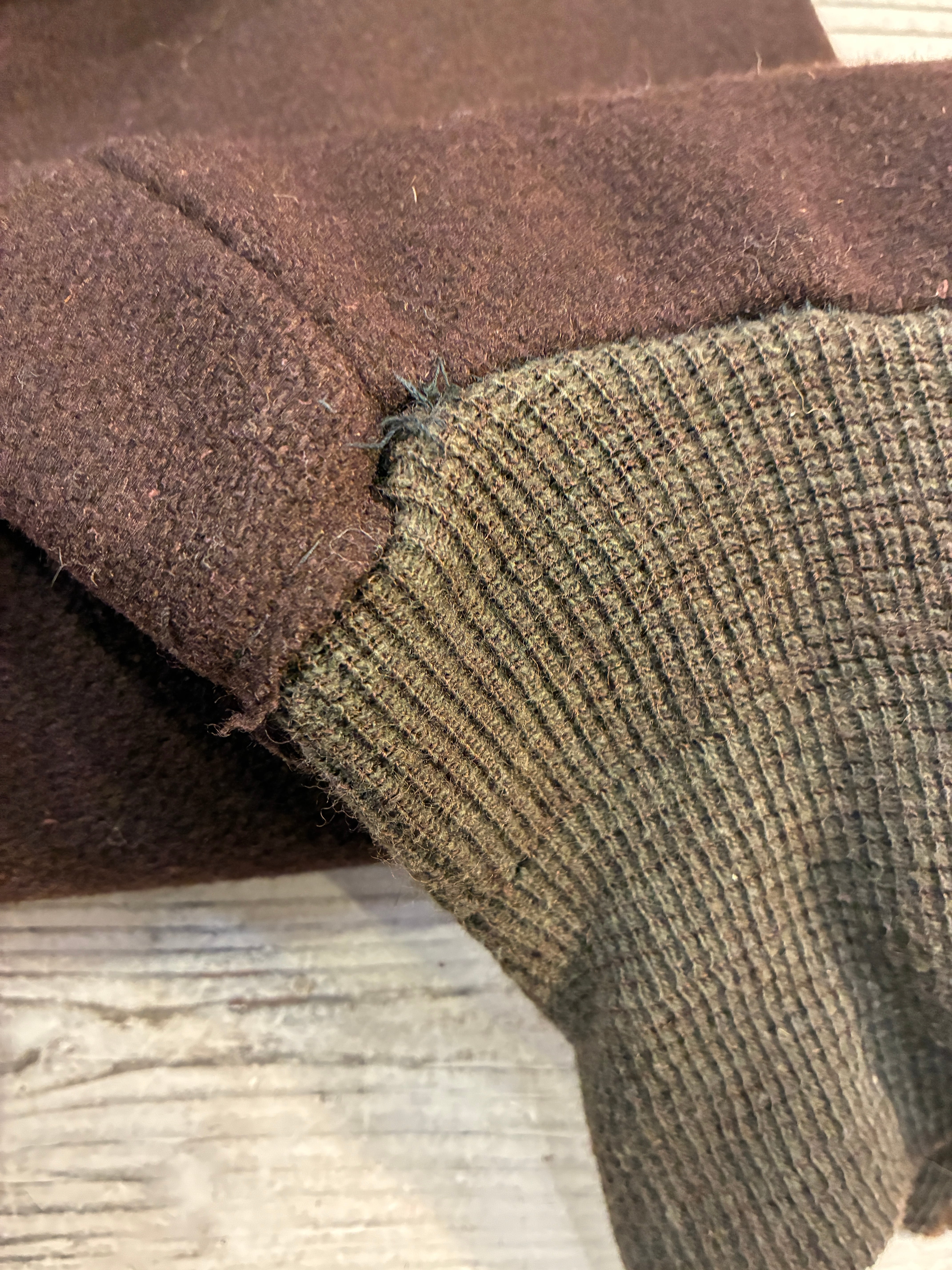 フロントウエスト付近、ウールに禿げあり。裾リブ縫い合わせ部分、ほつれ、リペア跡あり。リブに小さな穴あり。