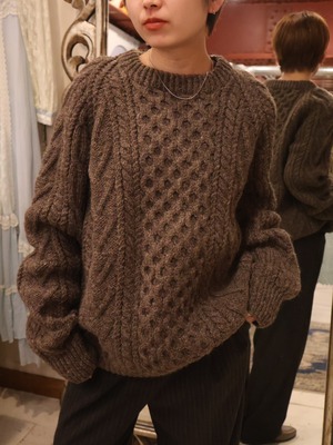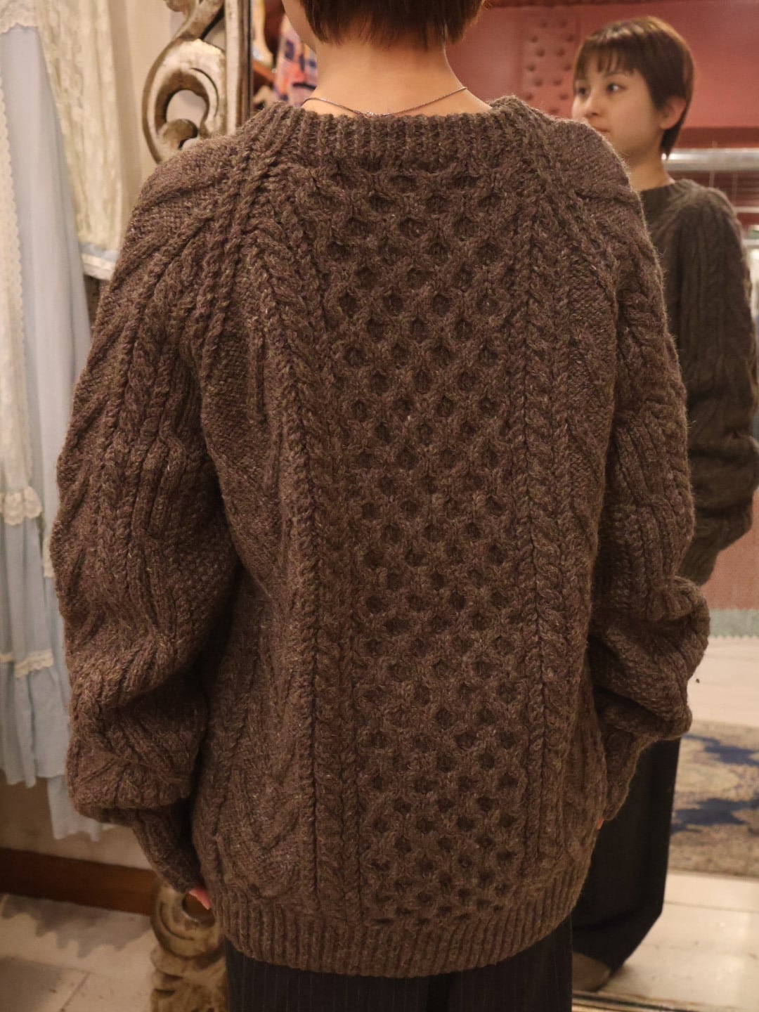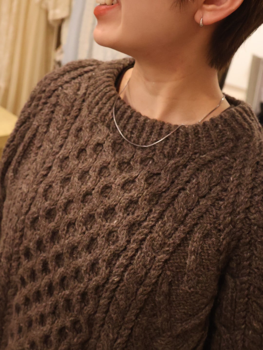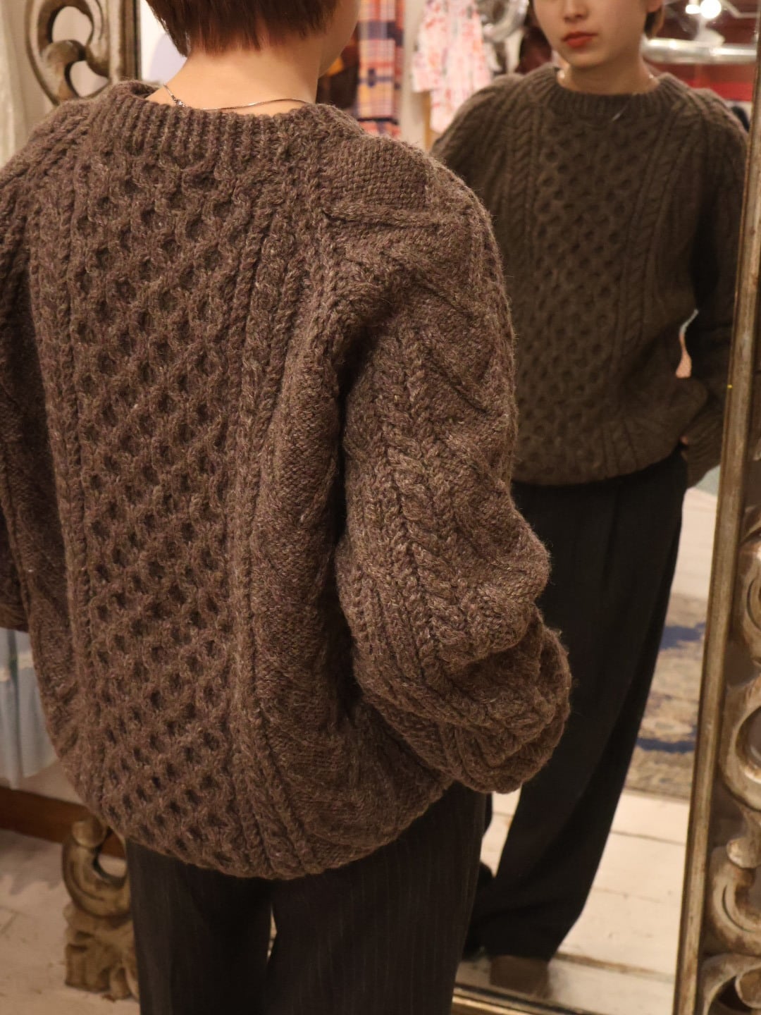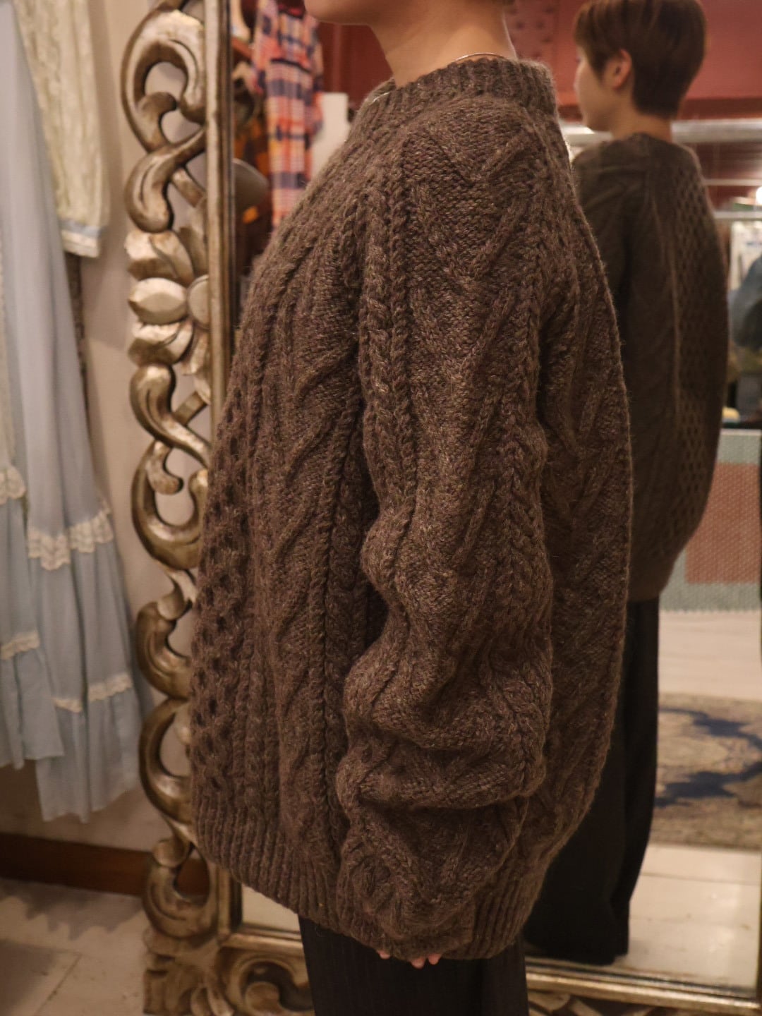 ゆったり大きめなオーバーサイズのフィッシャーマンニットはボトムをコンパクトに纏めたり、ワンピース風に着るのも◎