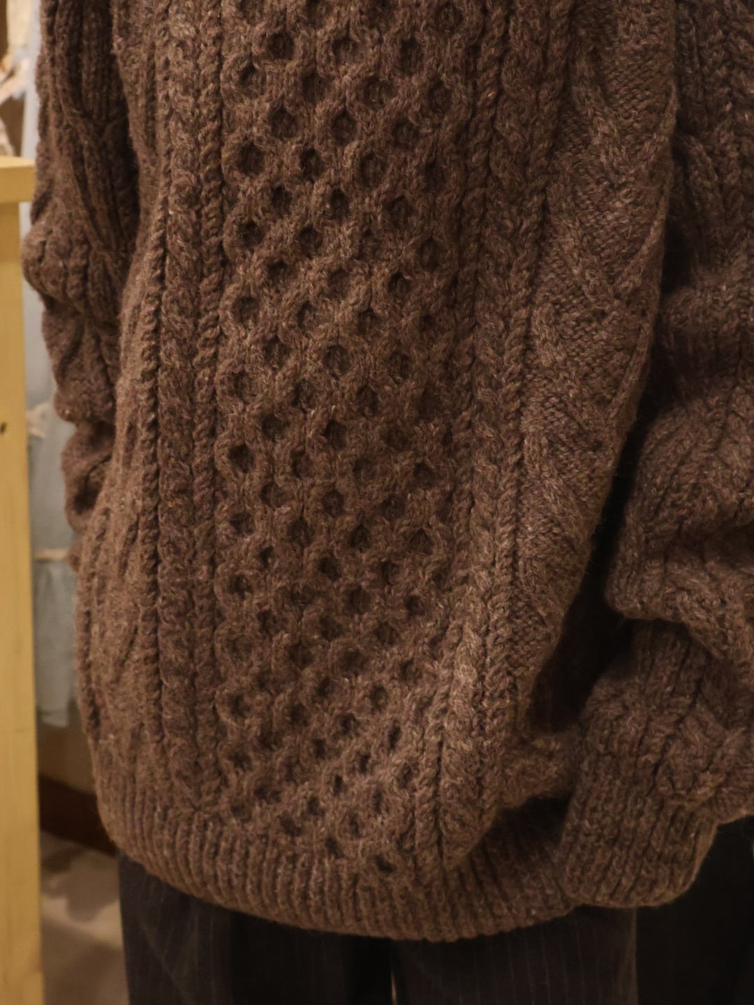 ウール製でほどよい重みがあり、防寒性と保温性に優れているのが特徴のフィッシャーマンニット。