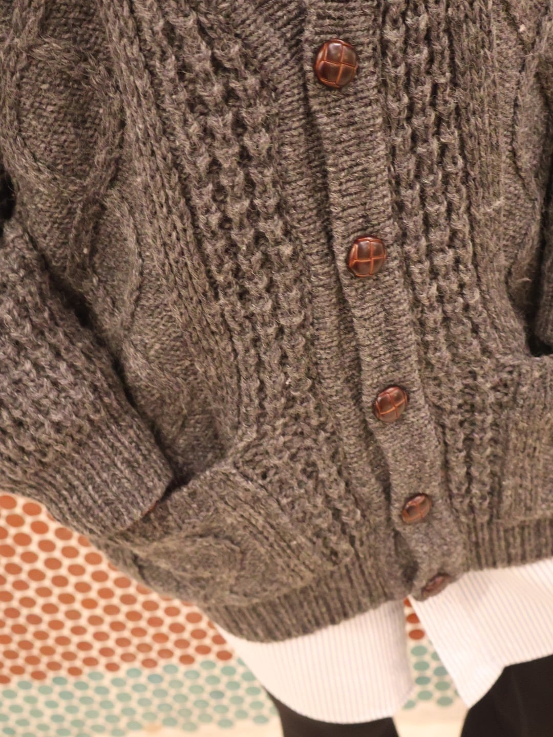 ウール製でほどよい重みがあり、防寒性と保温性に優れているのが特徴のフィッシャーマンニット。