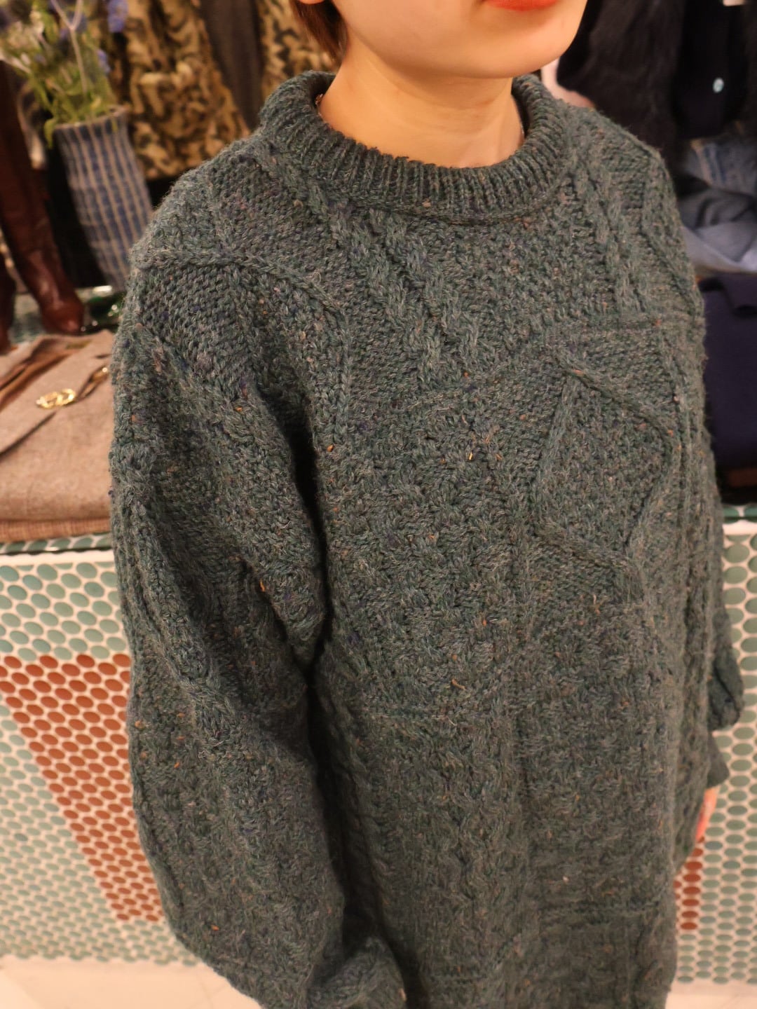 ウール製でほどよい重みがあり、防寒性と保温性に優れているのが特徴のフィッシャーマンニット。