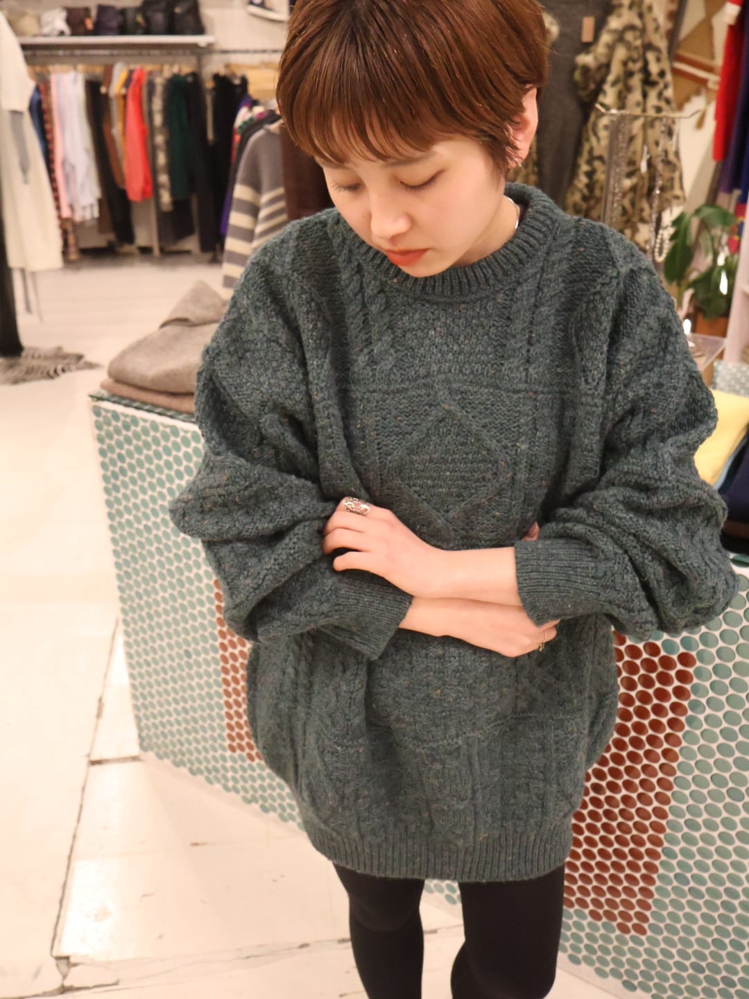 オーバーサイズのフィッシャーマンニットはボトムをコンパクトに纏めてレディースらしく着るのがオススメ。