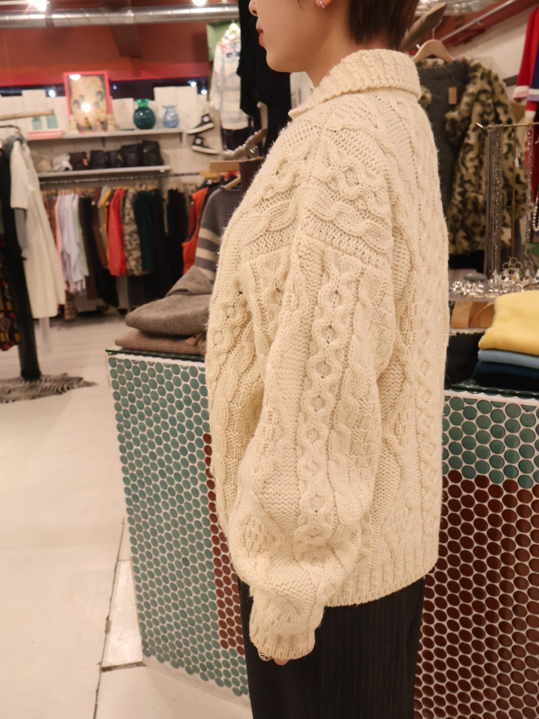 ウール製でずっしりとした重みがあり、防寒性と保温性に優れているのが特徴のフィッシャーマンニット。
