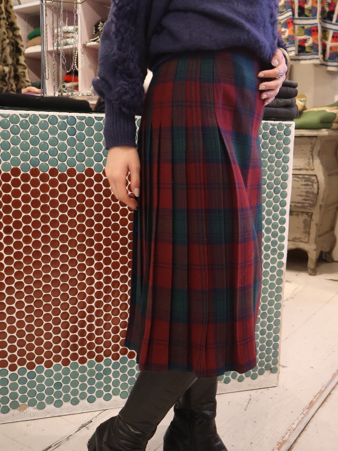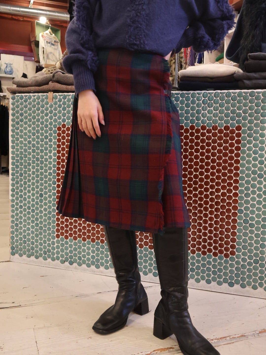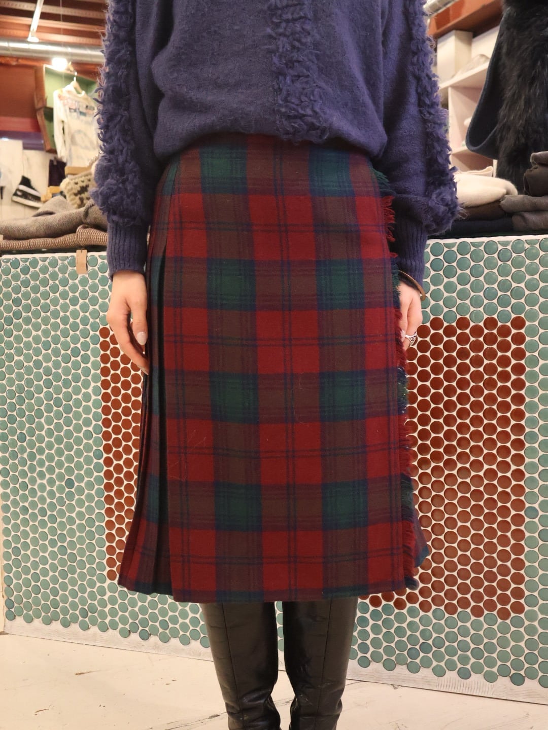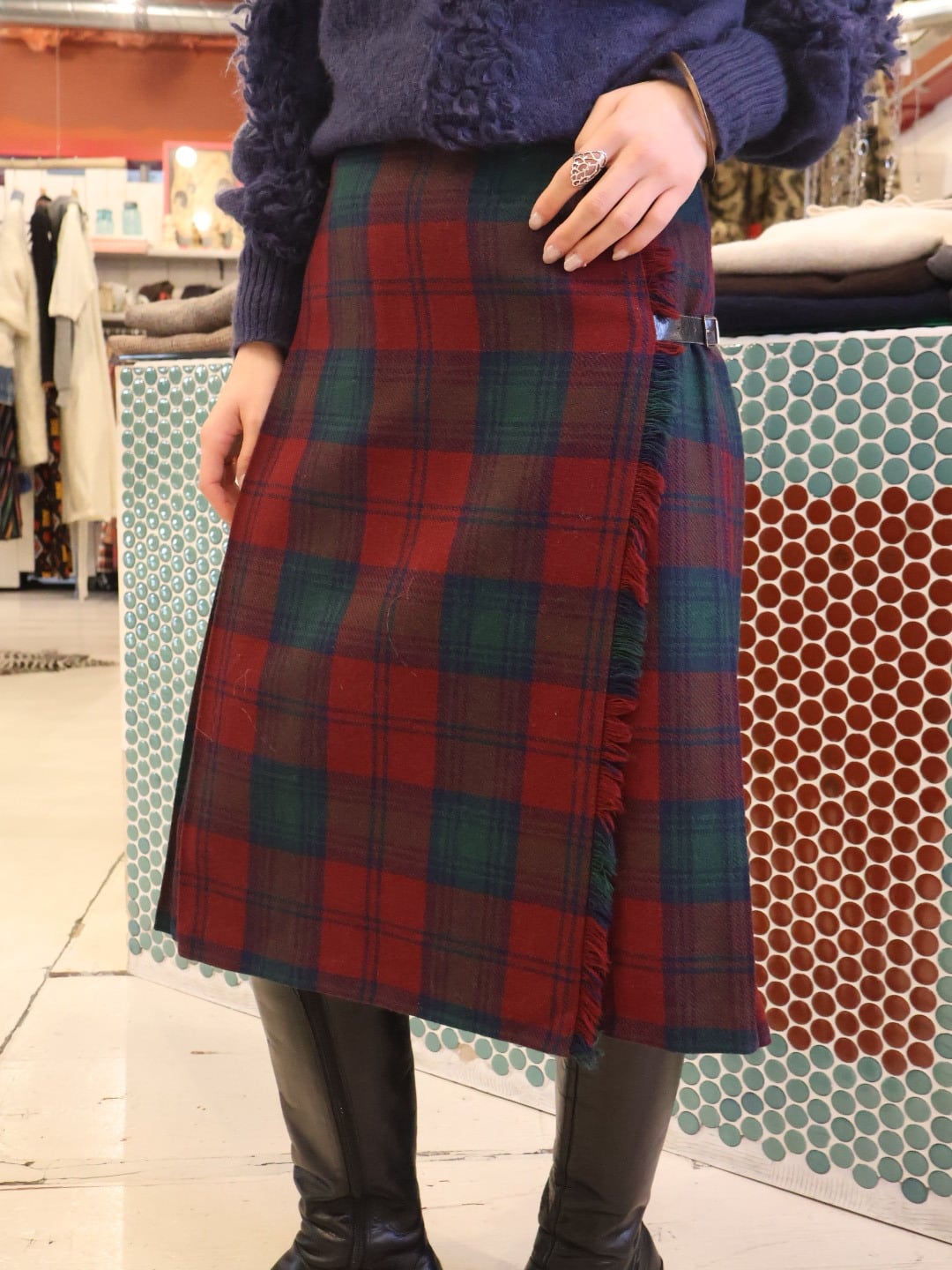 キルトスカートは、タータンチェックの生地にプリーツが施され、腰部分をベルトやピンで留める巻きスカート。
