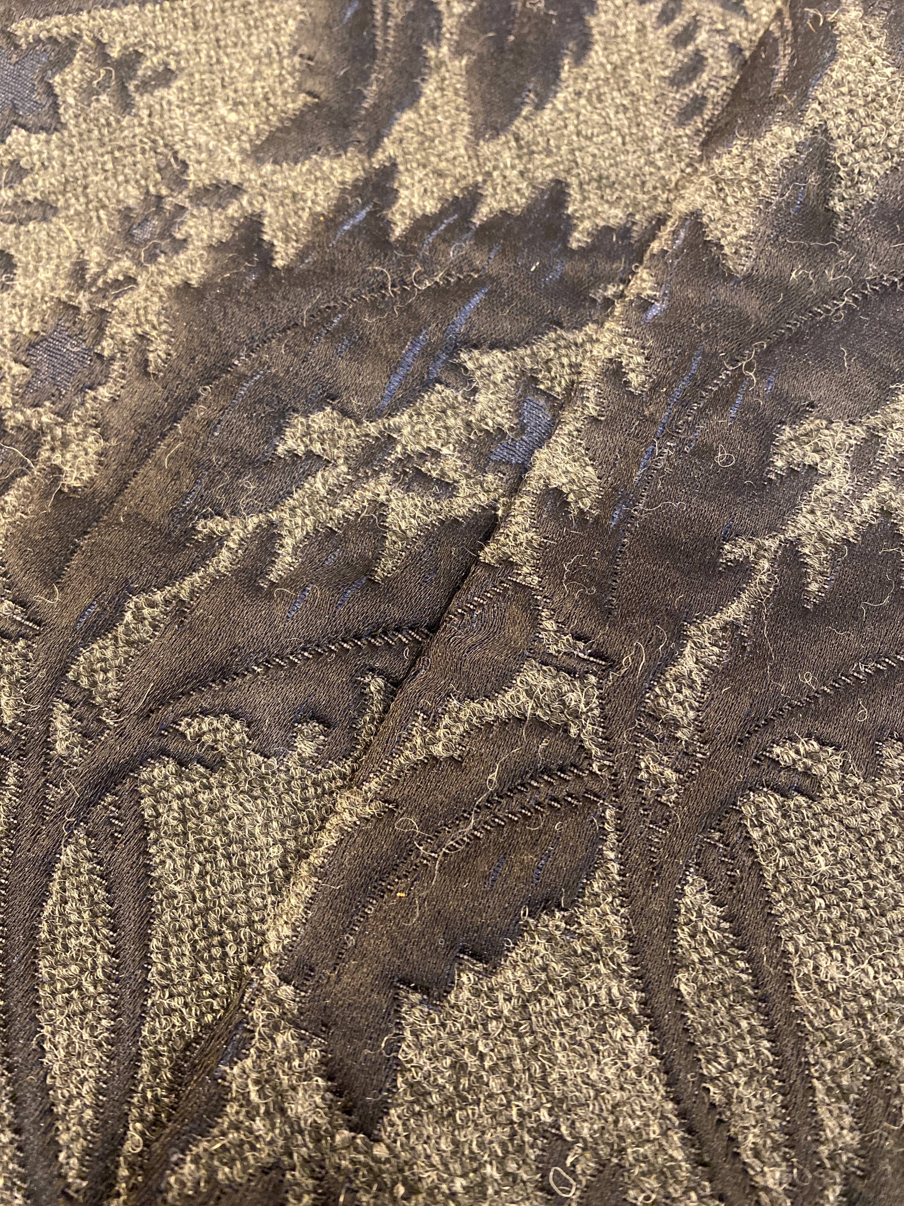 花やリーフのモチーフが散りばめられた、ジャガード織のデザイン。