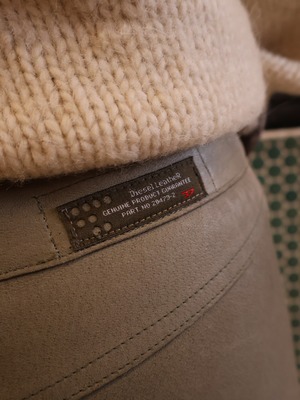 グレーとオリーブの間のようなカラーが洒落た一本。
