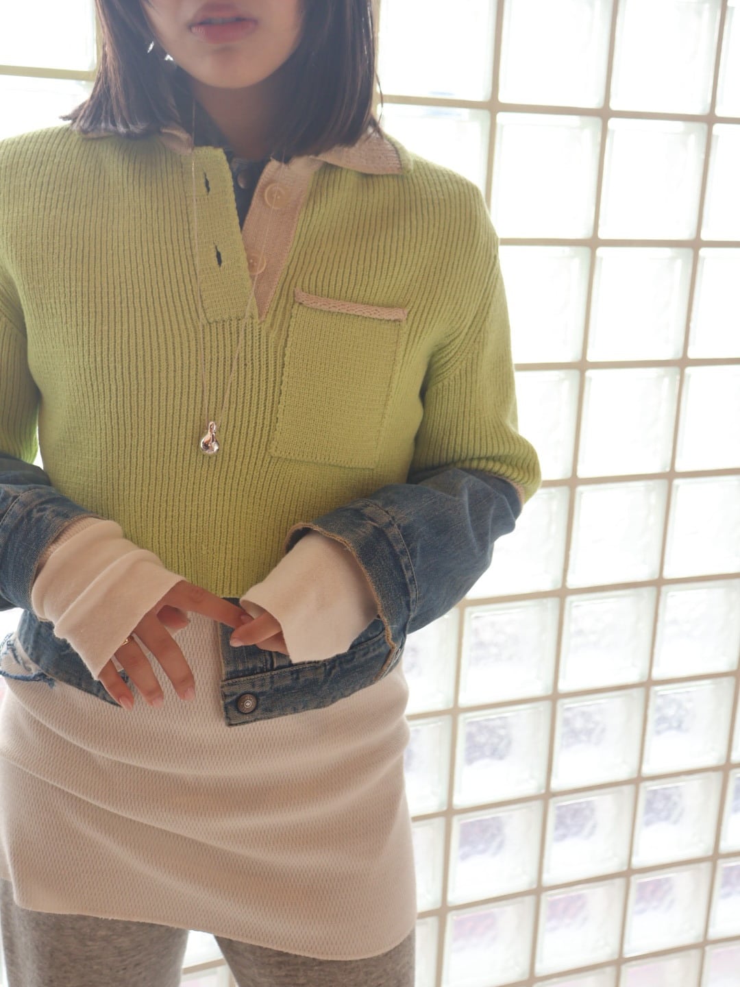 ジャックムスから、鮮やかなライムグリーンのニットポロが入荷。半袖、短丈でレイヤードの楽しい一着。ドライタッチな質感で、夏場も爽やかに着られそう。