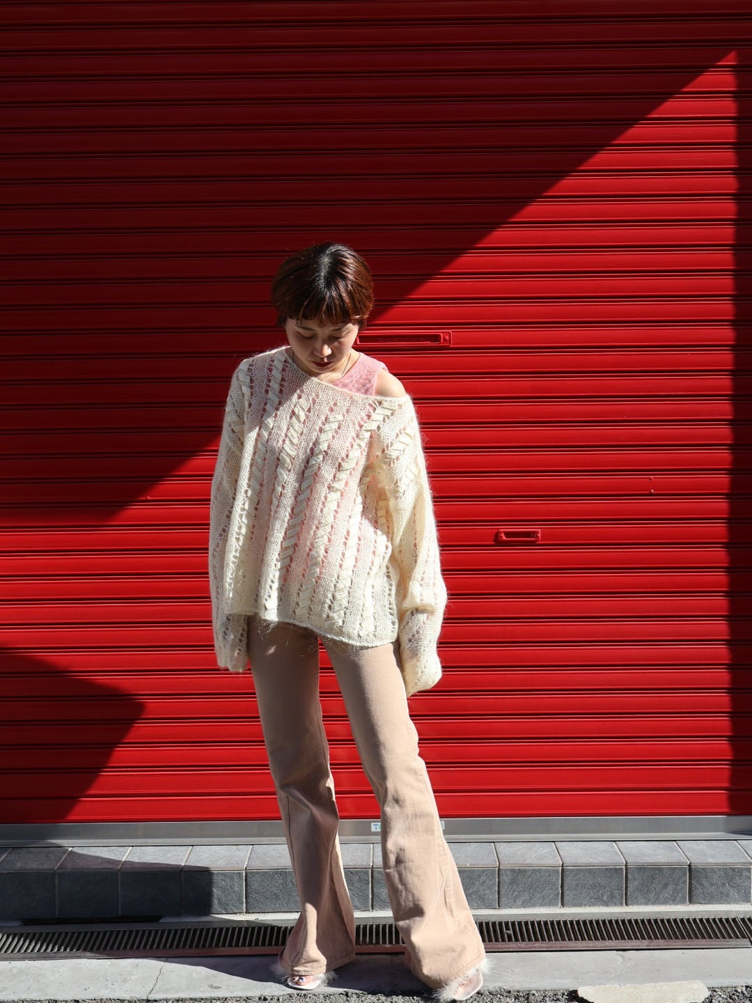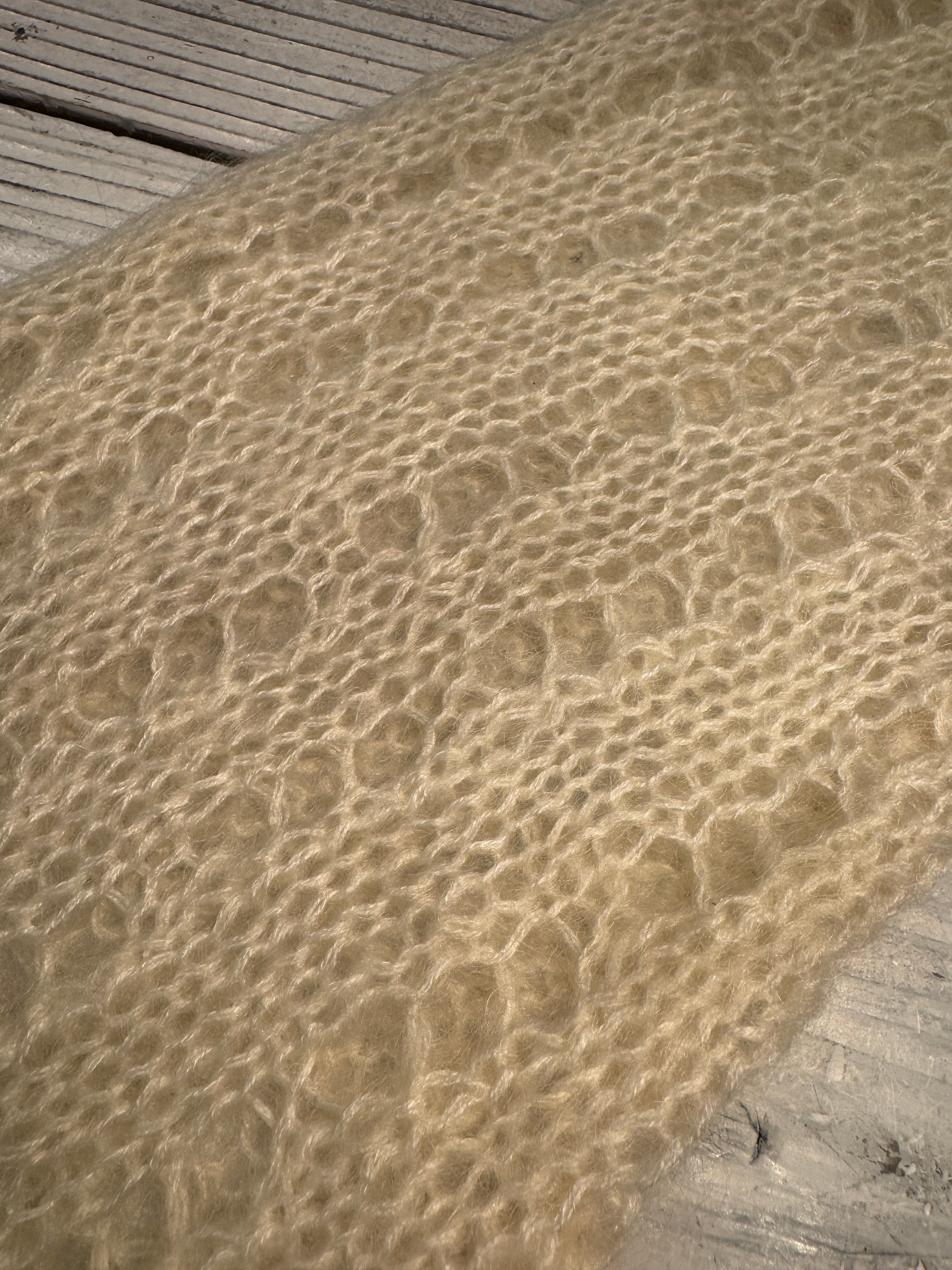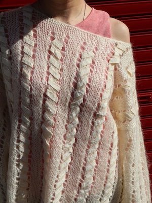繊細な透かし編みが印象的なローゲージモヘアニット。