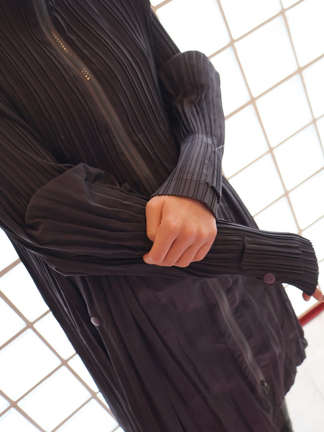 アームなどは細身なラインながら、プリーツデザインで伸縮性があり、厚手のインナーも案外イケそう。