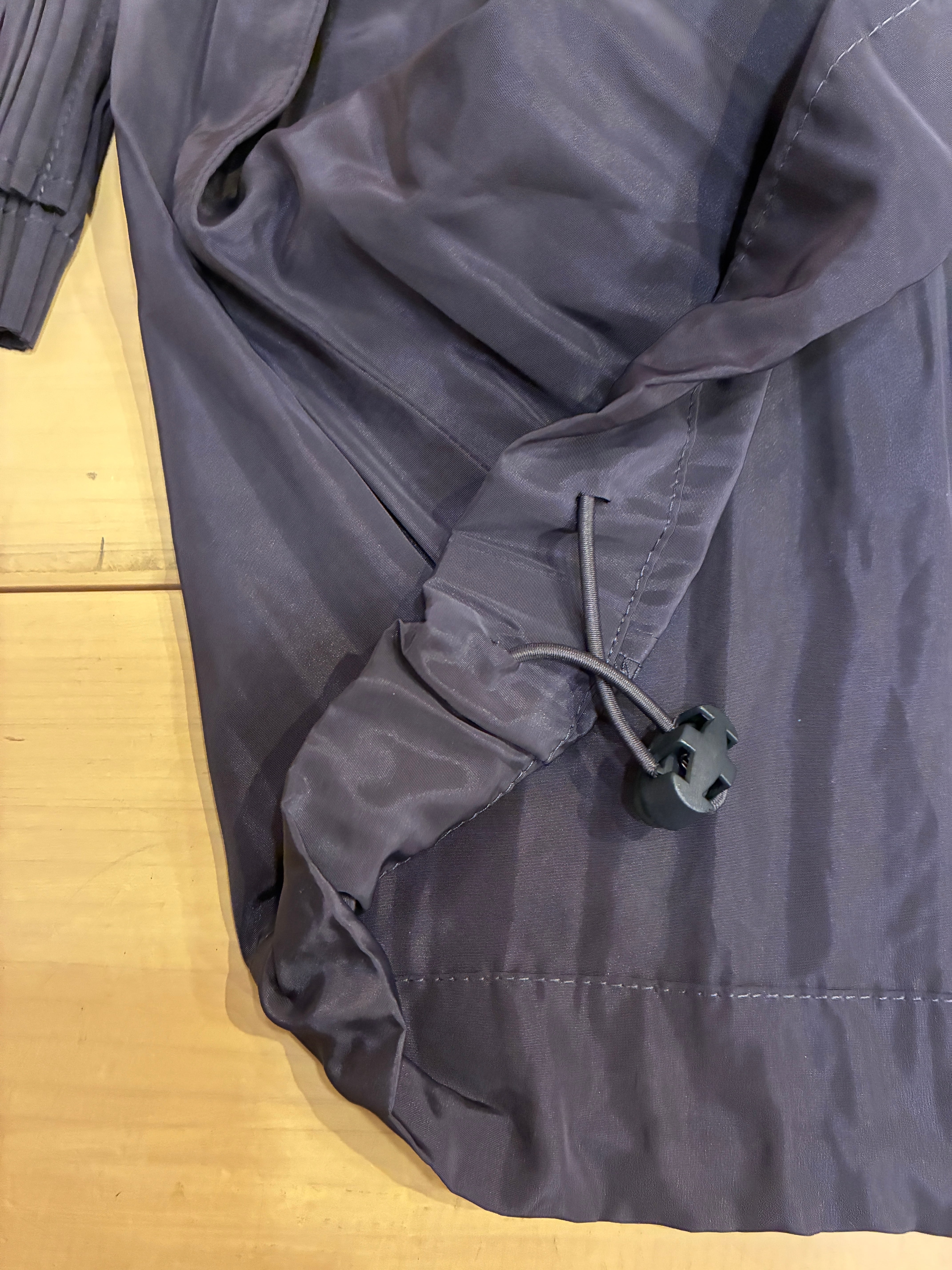 ダブルジップのデザインと、裾は絞れるドローコードつきで、バランスが取りやすい一着です。