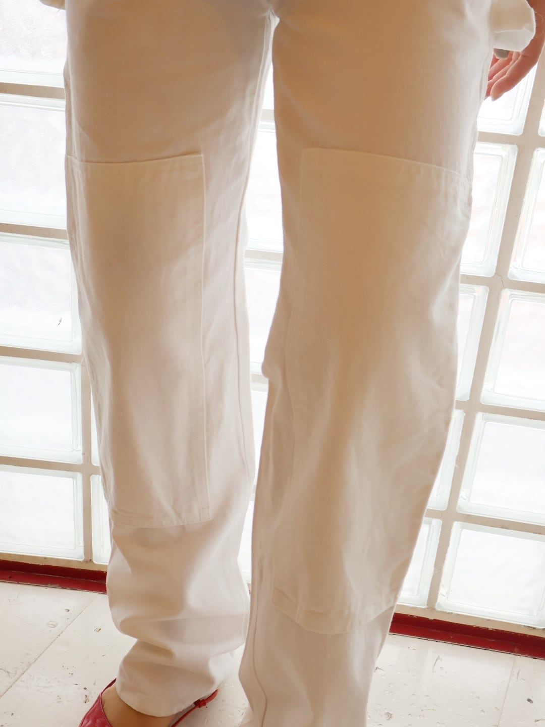 30×32の、ほどよくルーズなサイズ感とダブルニーデザインがポイント。