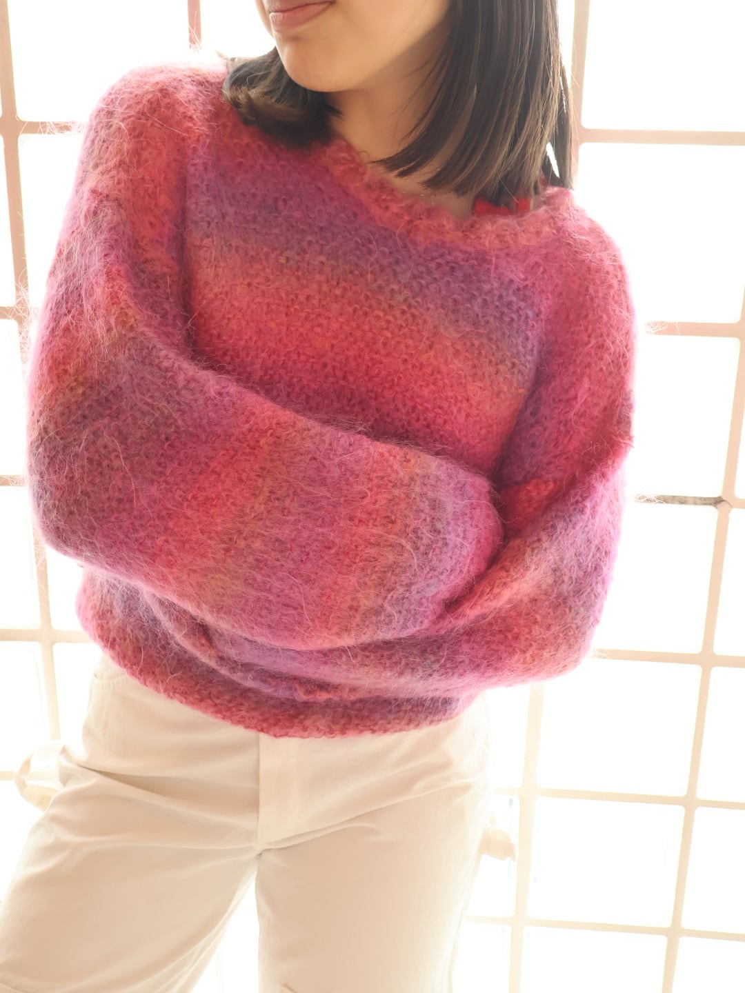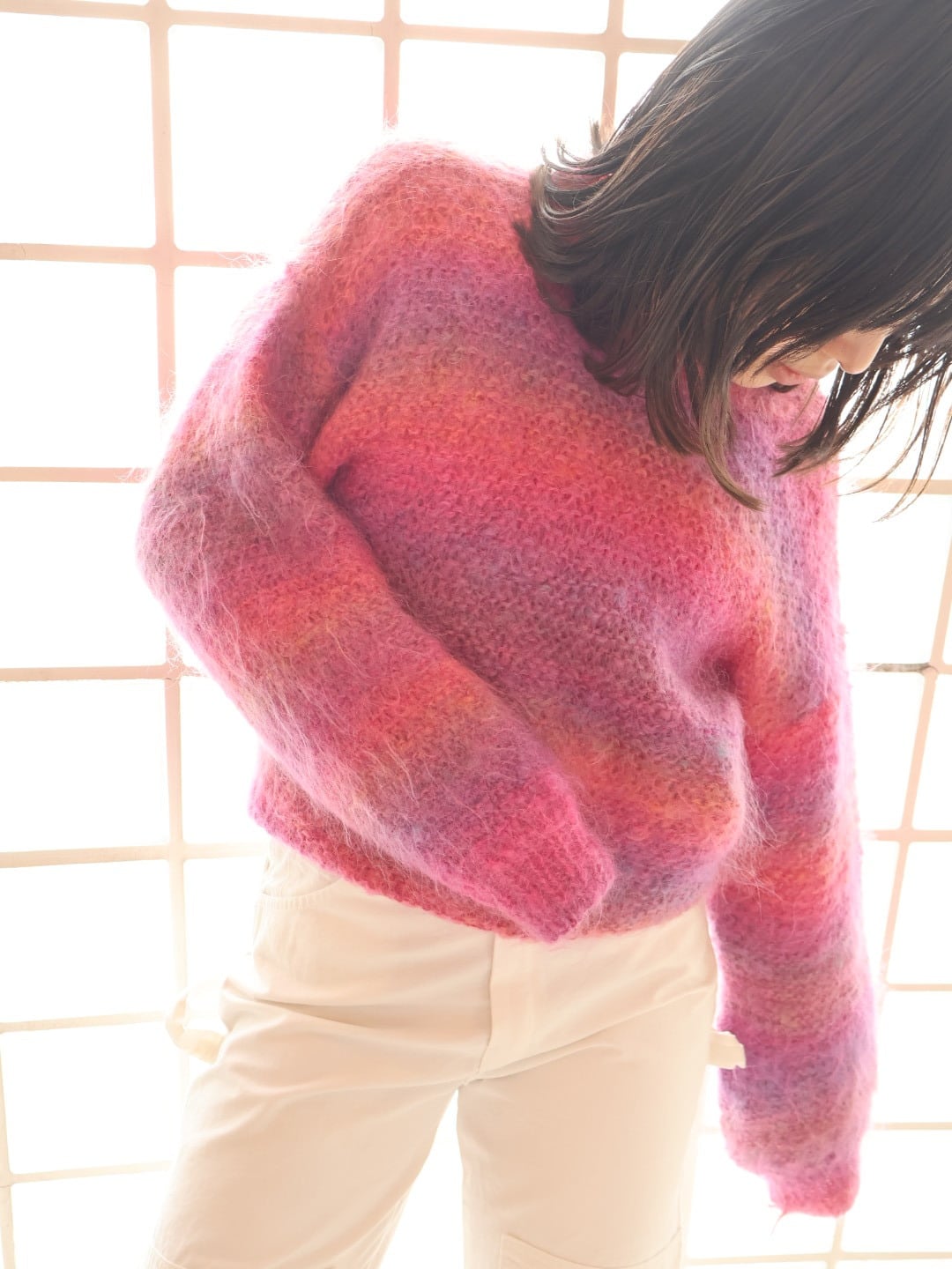 鮮やかなグラデーションカラーが春らしいモヘアニット。
