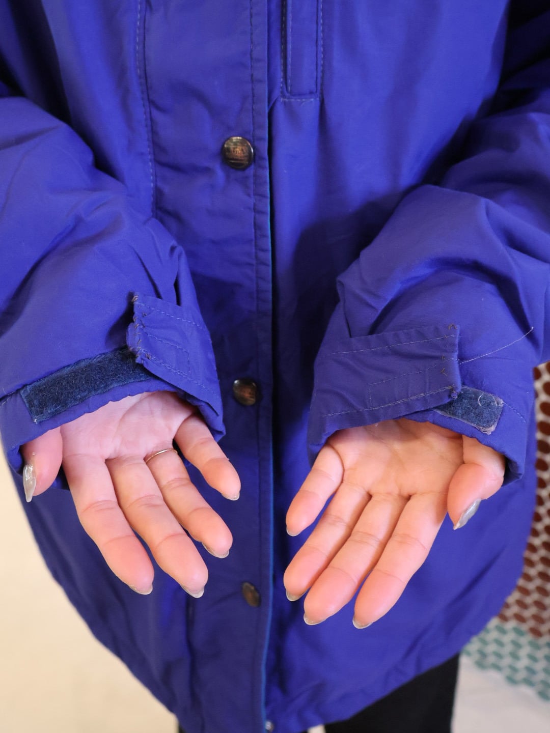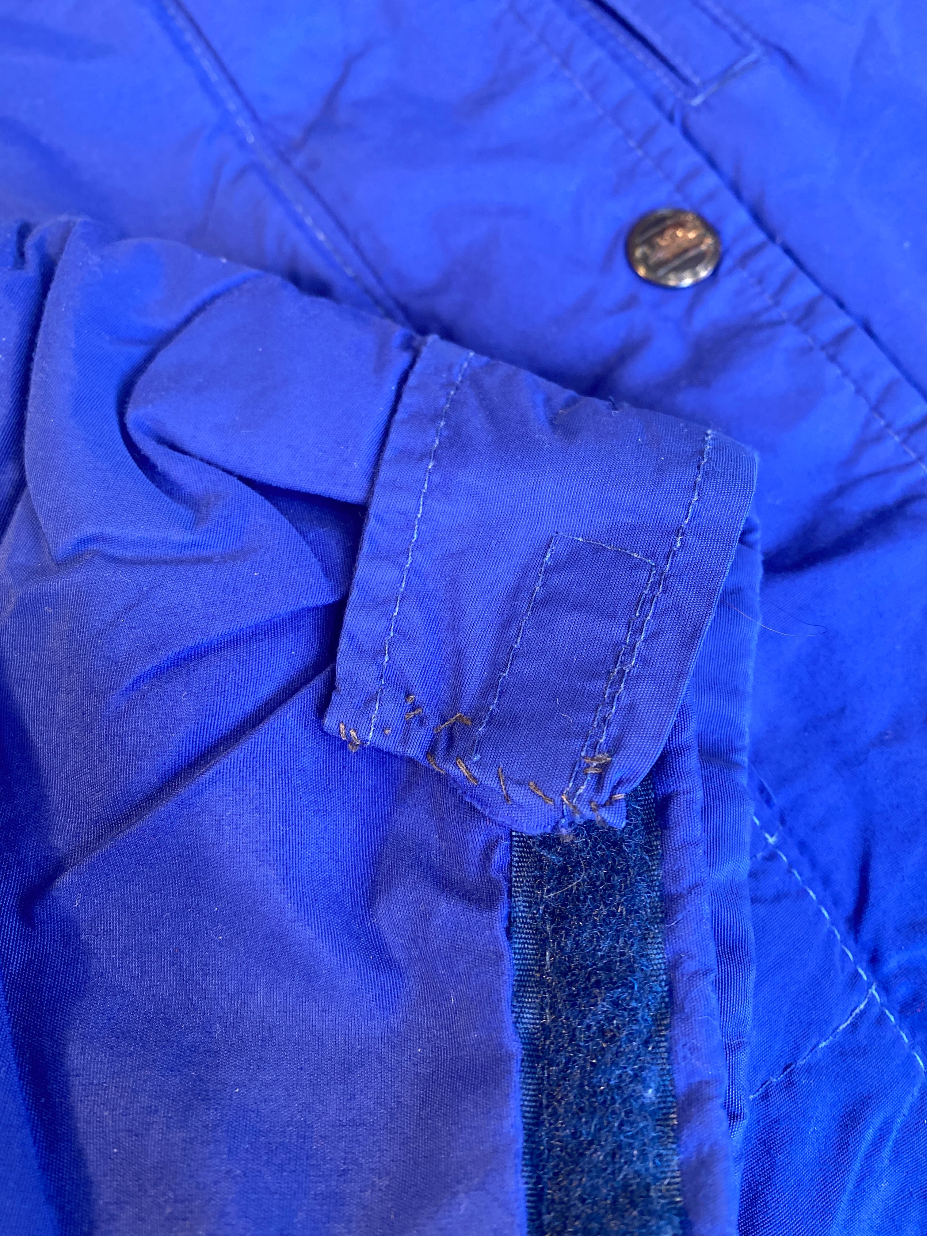 両袖口のマジックテープ付近が手縫いで縫われた跡がございます。