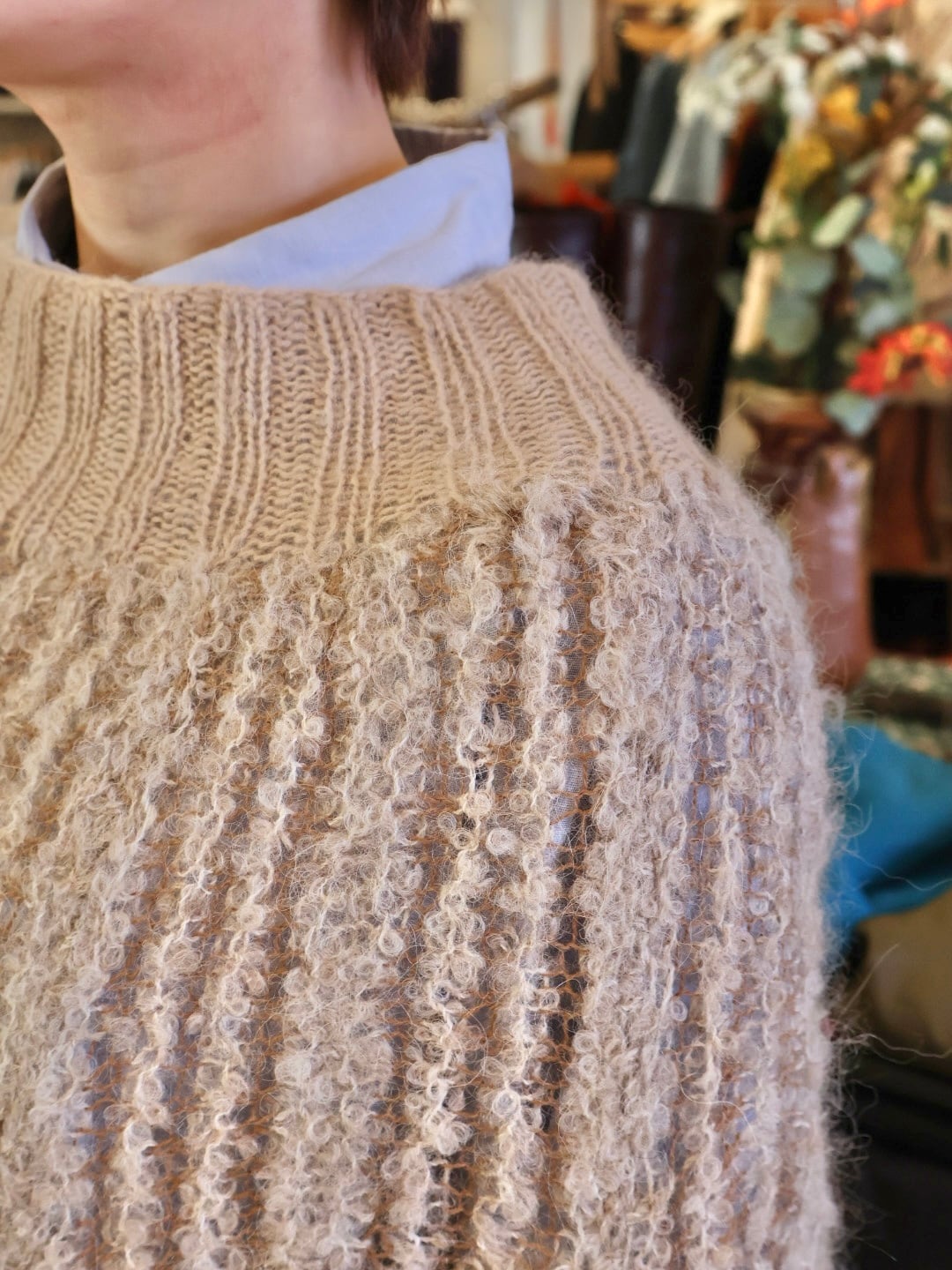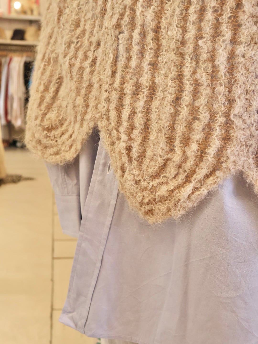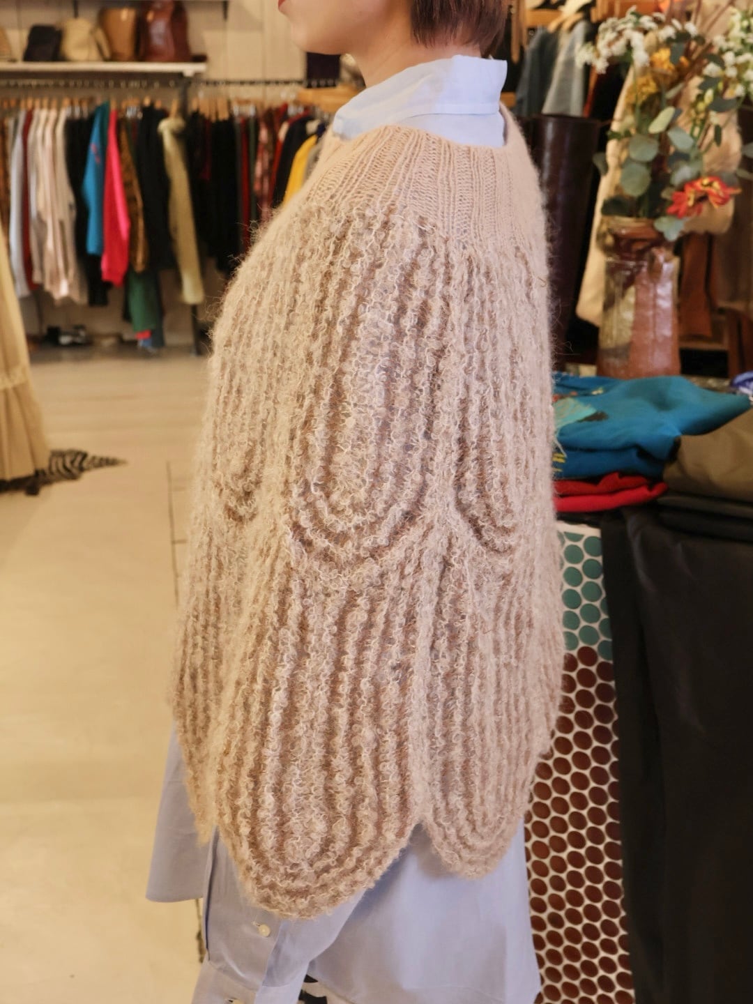 ベビーアルパカの糸を使用しているため、肌触りも良くフワッとした素材感が可愛らしい一着。