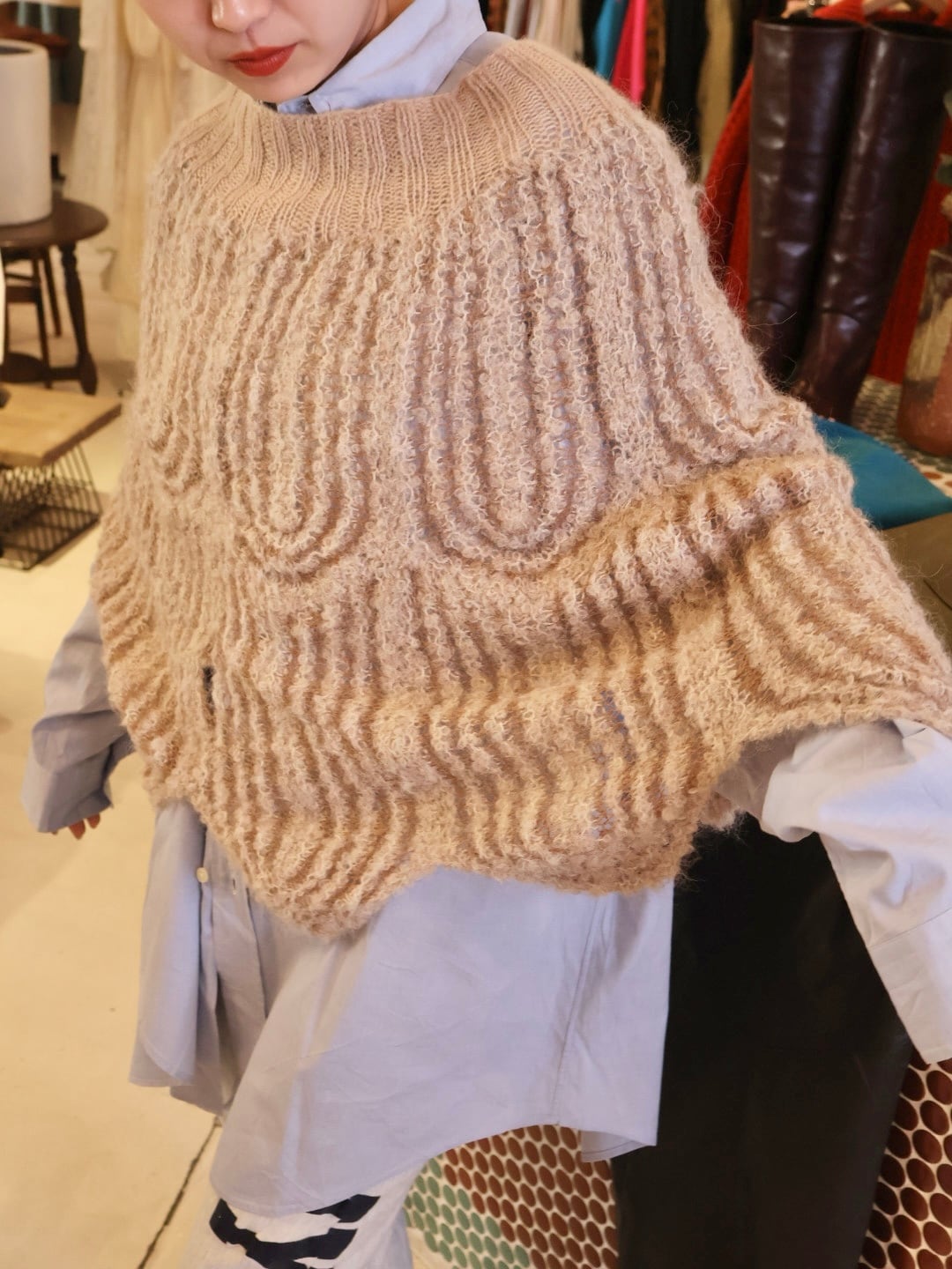 デザイン ニット ポンチョ