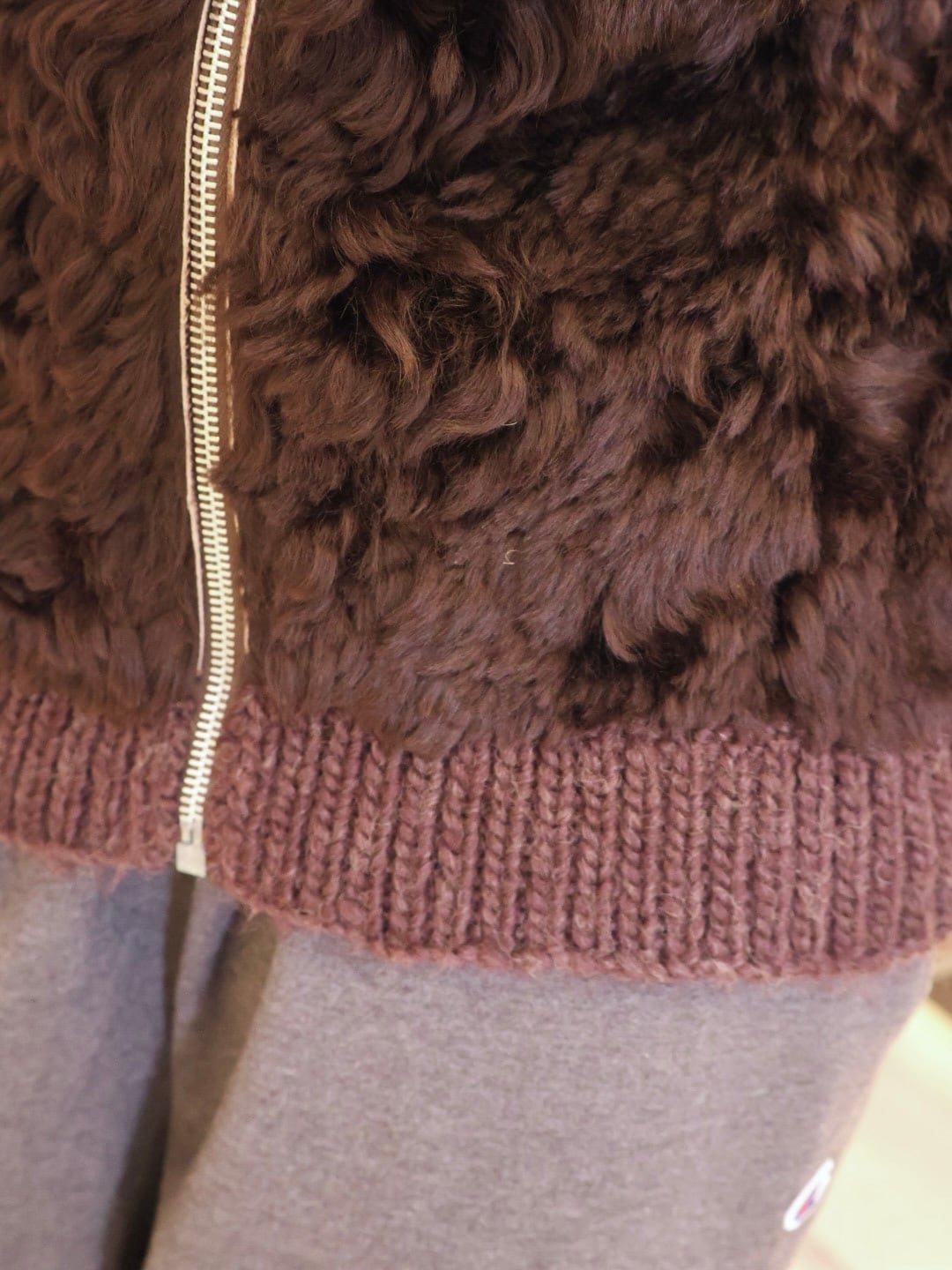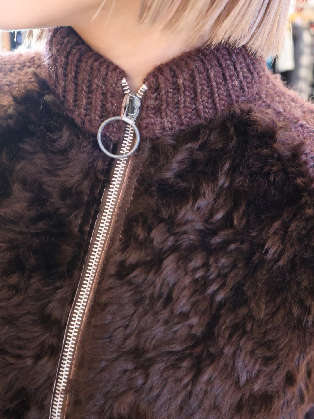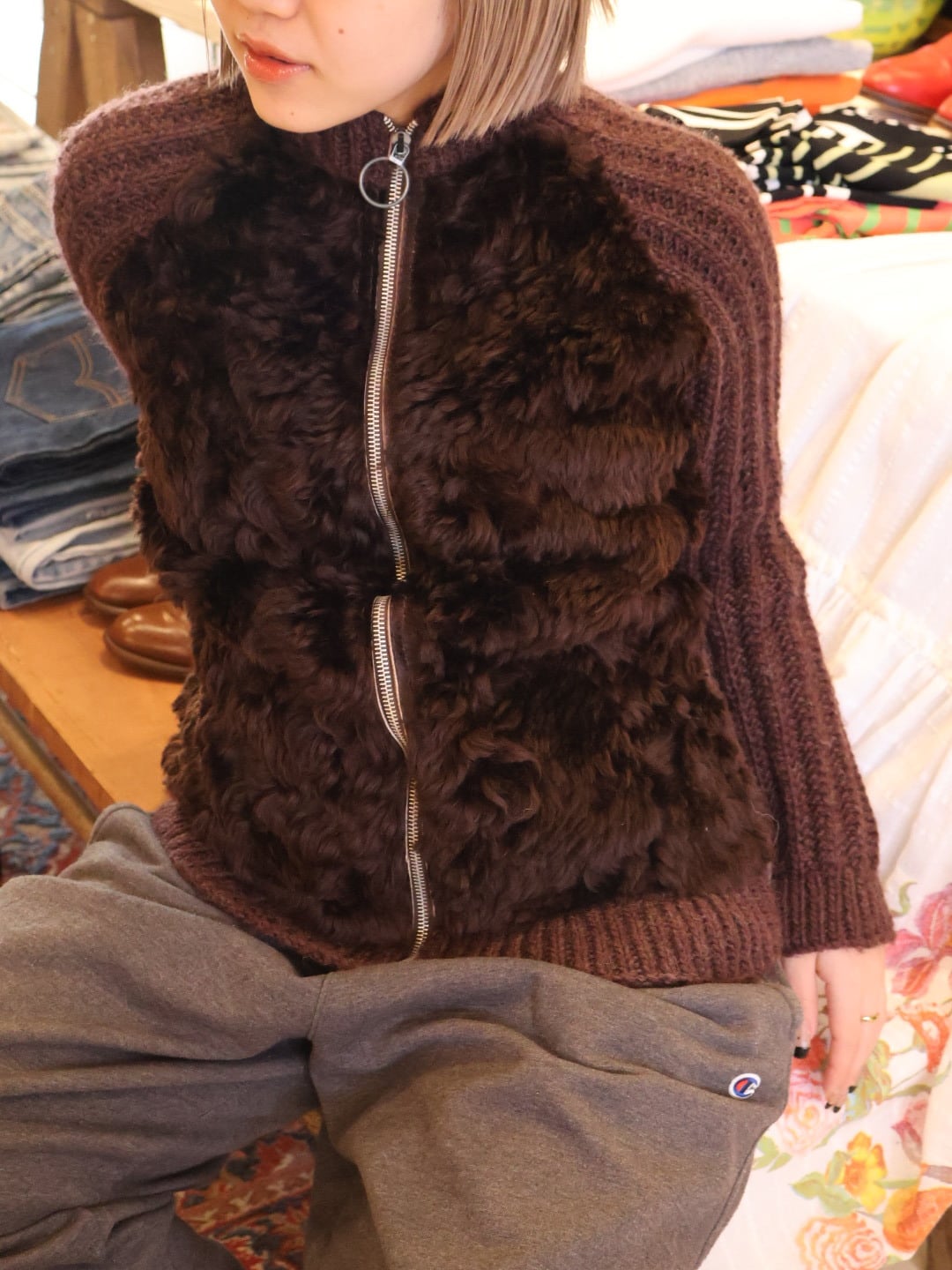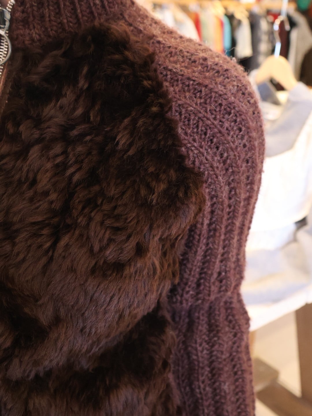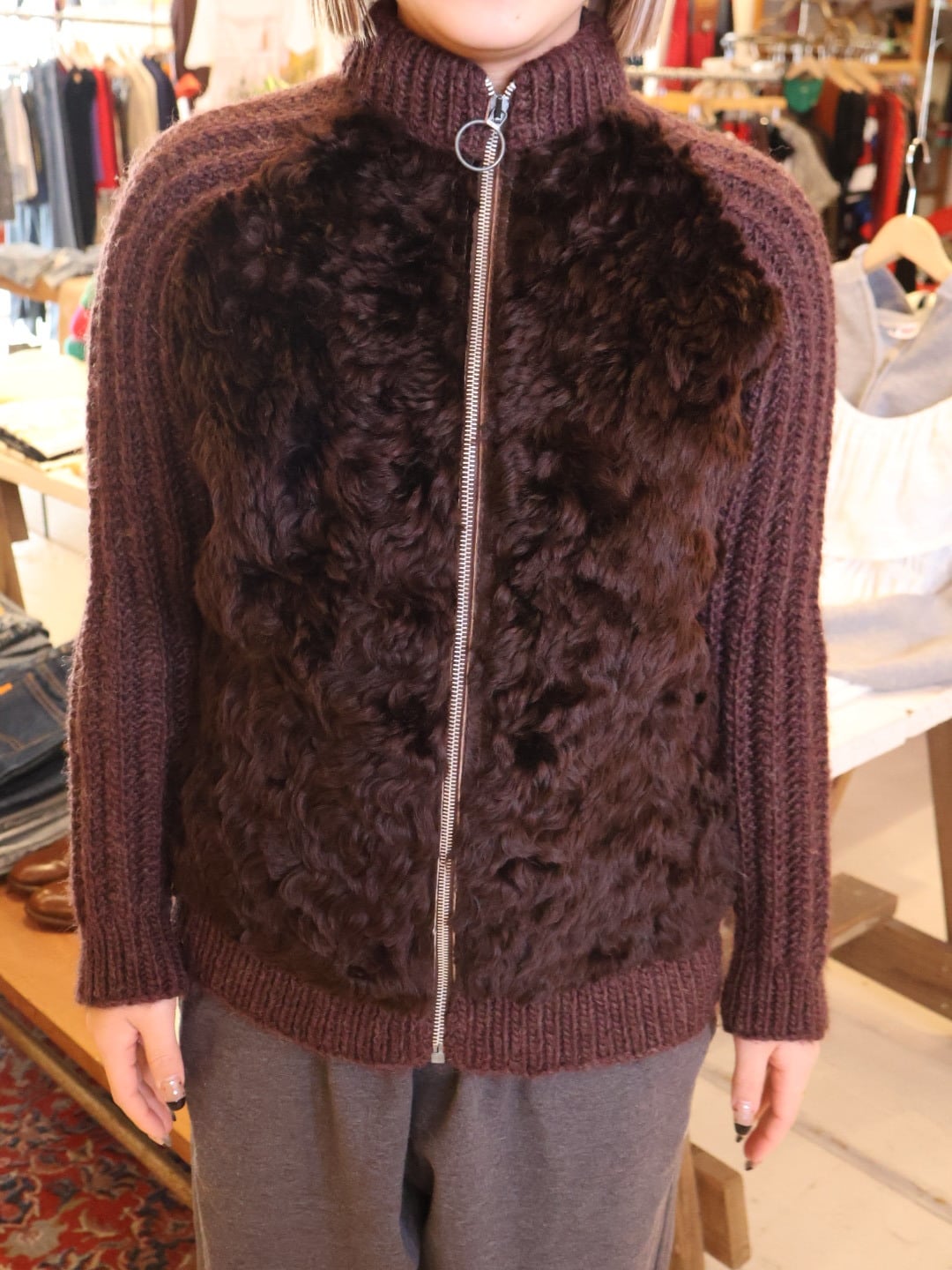 ニット × ファー ジップ アップ カーディガン