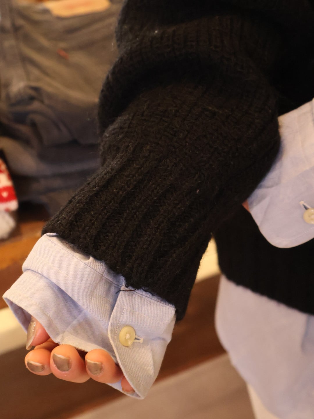 Vネックが広めなので、ハイネックや、フリルのブラウス、他にも色々インナー次第で雰囲気もがらりと変わるかと。